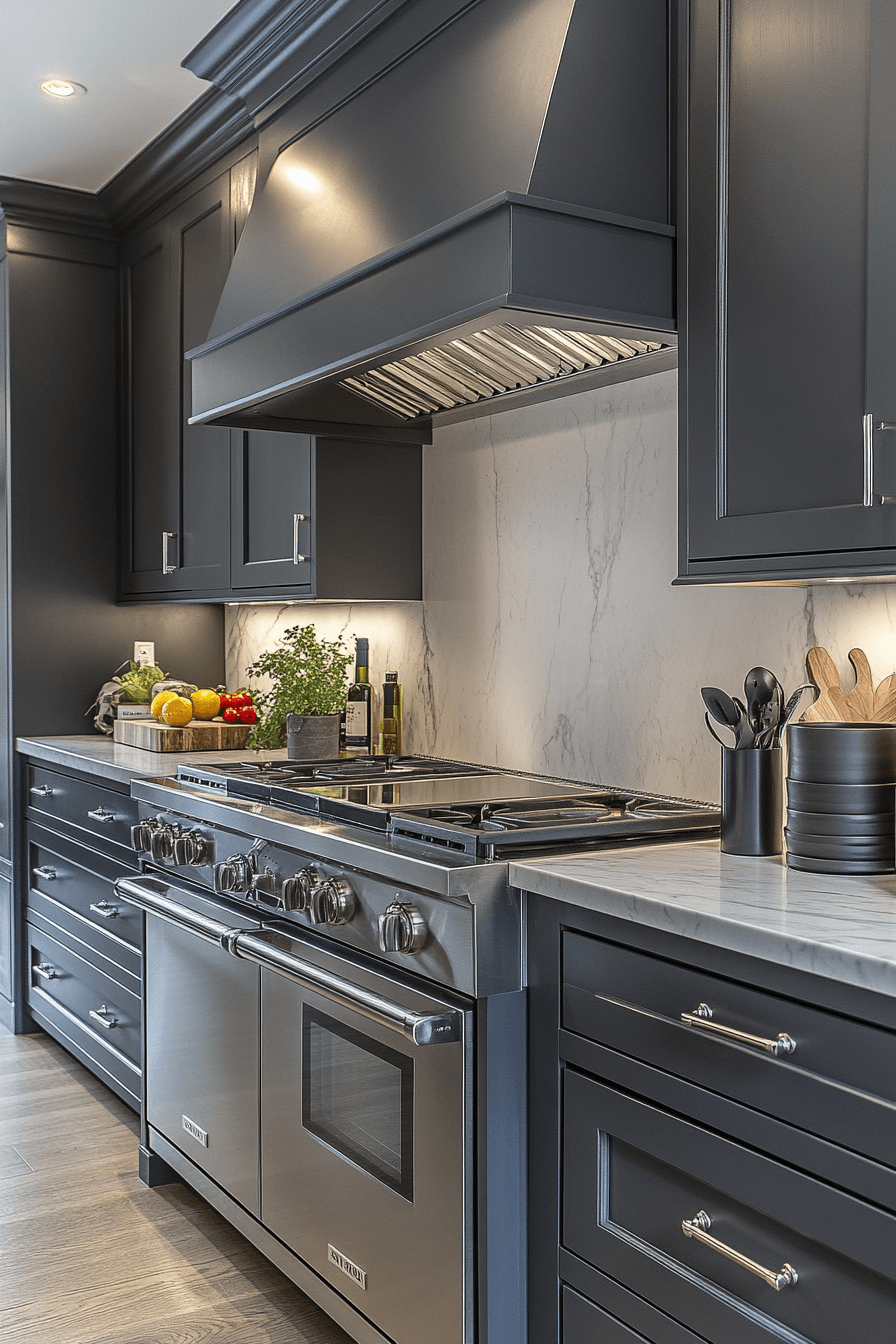2. Chic Charcoal Cupboards