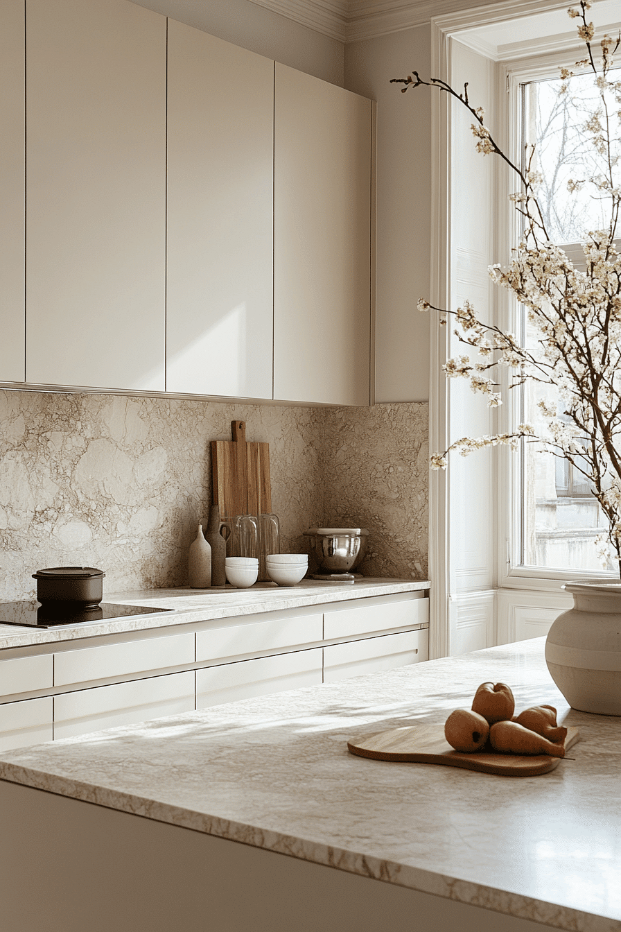 Balance and polish define kitchens styled with light taupe kitchen cabinets as their foundation. The neutral shade keeps everything cohesive while still adding subtle richness. Delicate veining in countertops and textured finishes shine without overwhelming the eye. This approach avoids fleeting trends yet feels completely fresh. The overall impression is understated elegance that stands the test of time. Embrace this refined taupe look and elevate your kitchen with lasting style.