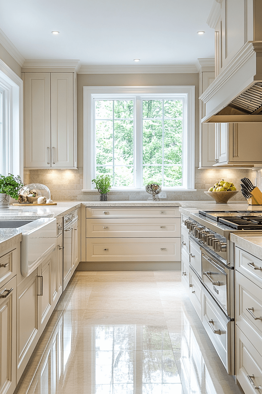 Ivory-toned neutral kitchen cabinets are ideal for creating a clean, contemporary look that still feels inviting. The light shade keeps the room feeling open and spacious, especially helpful in smaller kitchens or galley layouts. With sleek lines and minimal detailing, the design highlights texture, hardware, and lighting in all the right ways. You can pair ivory with bold pulls for a chic contrast or keep everything soft and harmonious for a serene vibe.
